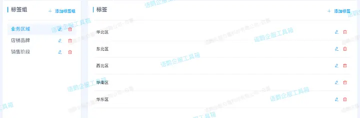 打开社群标签管理,左侧为标签组,右侧为该便签组包含的标签。