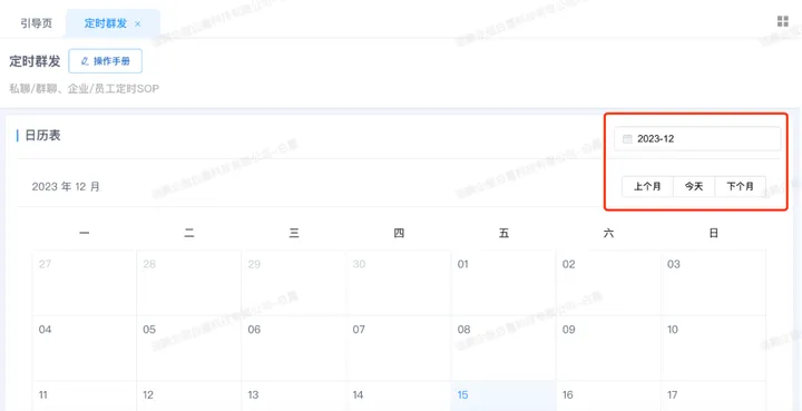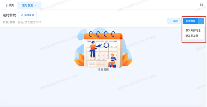 1.左侧点击「定时群发」,进入编辑页面,选择群发时间