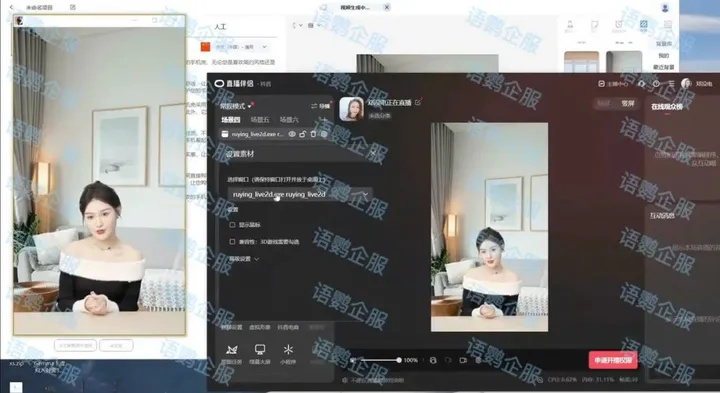 语鹦企服「数字人直播」功能场景适用广泛,所有支持拿到推流地址的平台,都可以使用数字人平台结合obs软件来用,抖音、快手、淘宝、支付宝、百度、视频号、微信小程序、B站、facebook等。