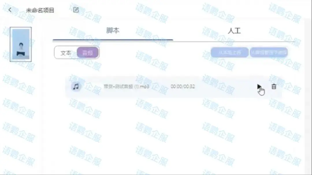 除了脚本驱动以外,语鹦企服「数字人直播」还支持人工语言驱动数字人,可直接本地导入音频文件作为数字人的直播声音,也支持上传文本格式供AI读取识别后生成音频。