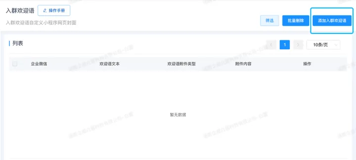群主可以在工作台-客户群-入群欢迎语进行配置,入群欢迎语支持图片、视频、文件、网页和小程序。但是我们可以看出企业微信自带的入群欢迎语功能原始,无法满足我们多样化的运营需求。