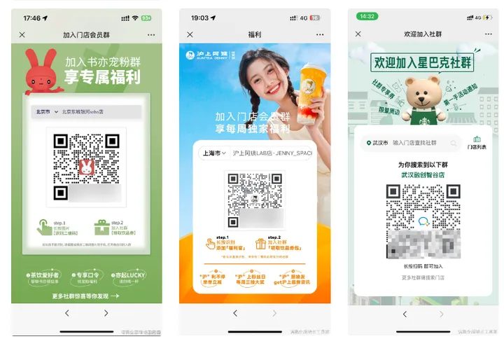 [定位进群]与[定位加微]原理相同,星巴克、瑞幸、茶救星球等多家知名线下品牌就是通过定位进群功能,在短时间内将大量的线下客户转化为私域存量,促进品牌与客户更多互动。