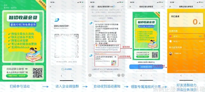 企业设计一张包含群聊二维码和具有吸引力文案的海报,鼓励用户分享至朋友圈。当有新用户通过海报上的二维码加入群聊时,分享海报的用户将获得相应的奖励。