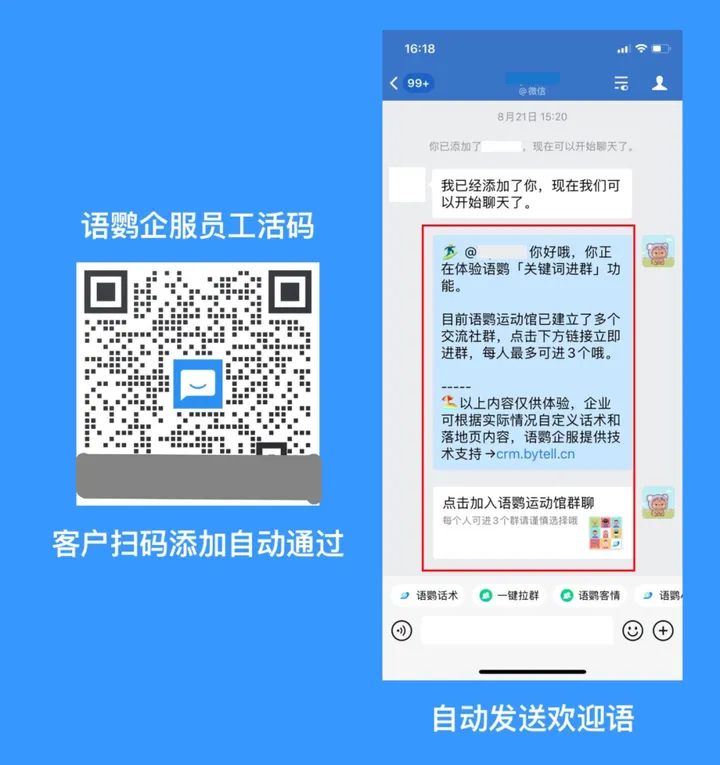利用好语鹦企服的这两项功能,就可以在添加到客户的第一时间快速做出回应,抓到洽谈的关键时机。