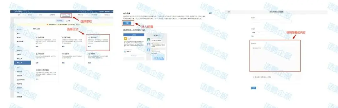 相较于“快捷回复”,“自动回复”是更具人性化的一项功能,商家无需随时手动查看聊天信息并选择内容发送,客户在进入私域的那一刻,便可自动收到编辑好的文字。这项功能需要登录企业微信后台进行操作,进入后台后,选择“客户与上下游”,在侧边工具栏中找到「聊天工具」-「自动回复」-「配置」-「新建」,便可编辑想要自动发送给客户的内容。在文字中,还可添加相关的链接、图片等进行更为详细的描述,相较于“快捷回复”有更大的操作空间与展示空间。