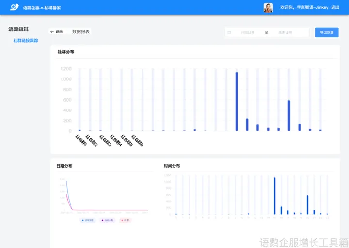 社群运营被广泛运用于商家对客户的跟进与服务中,透过社群营销,有利于快速实现客户价值的转化。而要提升社群运营的效率和质量,关键在于掌握各关联性指标数据。目前,企业微信平台对社群链接的点击量数据暂不提供查看服务;然而,借助语鹦企服的「社群链接跟踪」功能便能实现此目的。通过语鹦企服私域管家管理后台,企业可获取所有相关链接的点击次数、访问人数及数据报告,以此助企业精准改进及匹配营销策略与发布时机。