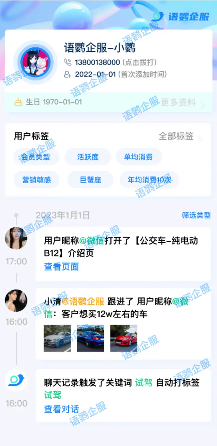 以上就是“企业微信如何管理和留存客户?如何通过企业微信实现持续成交?”相关话题的内容了。私域用户作为企业发展过程中的重要资产,其走和留,都在一定程度上影响着企业的销售与业务获益。这也是为什么在部分行业中,哪怕私域中仅有几个用户,但若是优质的目标用户群,成交一单便足以让商家实现销售额的倍增。在对用户的管理与留存上,可以使用语鹦企服工具箱中的功能来增强运营能力,提升与客户的持续成交机会。在工具箱中,也有其他帮助用户留存的功能,欢迎大家进入官网上中搜索相关程序进行体验。