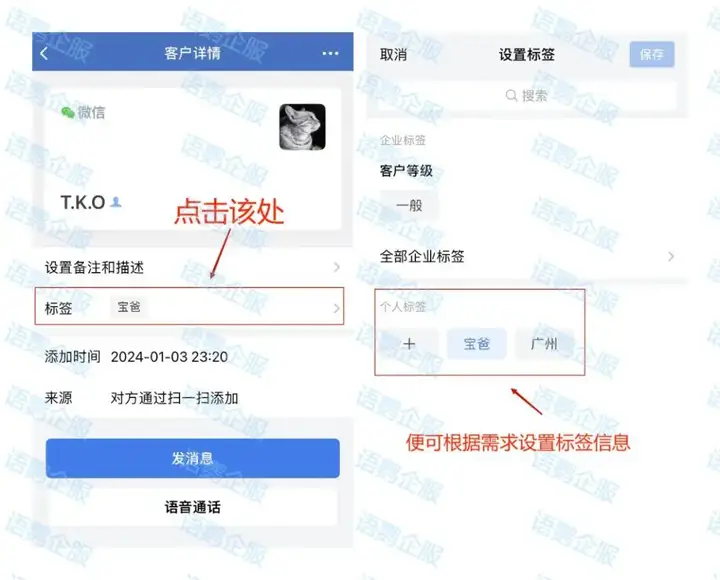 如果想加快这一流程,提升客户管理的效率,也可以使用语鹦企服的“员工活码”功能进行辅助。用户只要扫描了设置好的“活码”进入私域,便会在过程中自动被打上对应的标签和备注。标签跳出了单一化的范围,不仅支持多个标签标注,还支持分班打标签,分类更快更准确。