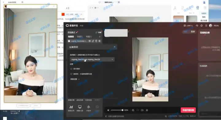 例如在抖音中,商家可以进入到「抖音直播伴侣」窗口中,点击来源里的「+」号,选择「窗口采集」并进行视频确认,就可以在直播画面中导入数字人,形成自动化的线上直播。
