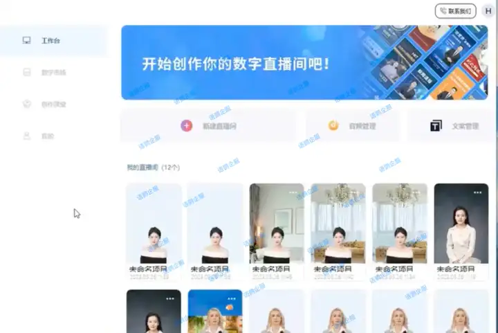 在制作一档数字直播前,首先要做的就是构建好品牌专用的直播空间。打开操作页面进入到工作台中,可以看到“新建直播间”的功能栏,点击后,便可在建立初始程序的同时,选定自己心仪的数字人形象与背景,为线上用户建立良好的初次直播间形象。