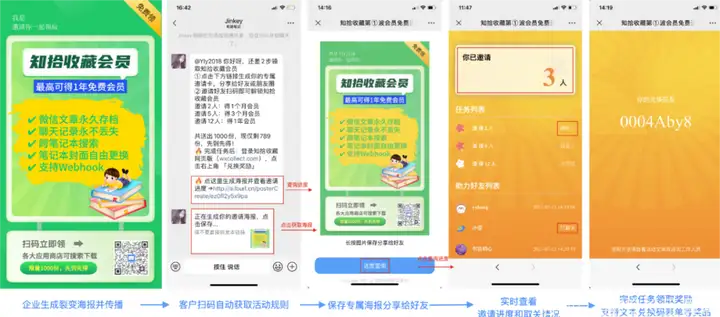 在私域客户稳定后,可以借助语鹦企服中的功能制作分享海报进行好友裂变,进一步拓展私域。用户只要扫描海报上的二维码,就会自动添加客服,从而形成又一波的流量,成为品牌的新资产。对于想要借助原生流量循坏打开私域的商家来说,是非常契合的一种打法。