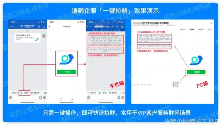 企业在进行社群运营的时候,往往需要几个员工在群里,对群里的用户进行解答问题,活动发布等服务。企业微信本身不支持一键拉群的功能,但是在群满人以后,可以自动新建群聊,继续进行拉人进群工作。那么,企业如何将相同的员工拉入群聊,避免重复的进群工作呢?我们可以用语鹦企服「一键拉群」功能,你可以在语鹦企服的工具箱「一键拉群」功能中提前设置好需要邀请或者入群的客户或员工,就可以实现一键拉群功能了。