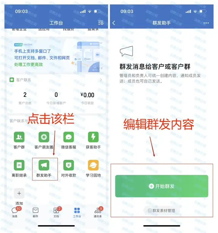 定期回访是客户服务管理工作中不可缺少的一点,不仅是因为周期性的沟通可以激起用户对品牌的关注,避免用户过度流失;更是因为持续性的回访举措可以强化用户与品牌之间的情感连接,从而提升依赖度和复购率。企业微信中,商家可以借助工作台的「群发助手」这一功能快速完成对客户的回访。在系统页面中自行编辑所要沟通的内容信息,或要宣推的产品卖点,然后在合适的时候群发给目标客户,以收集用户的反馈,调整运营方向。