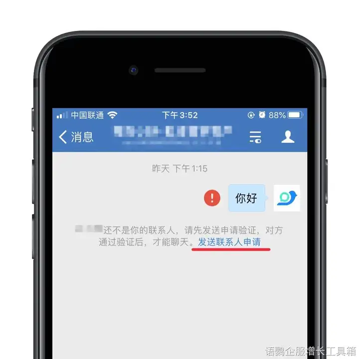 不仅通知及时,而且挽回也非常方便,只需要随意向客户发送一条信息就可触发“发送联系人申请”,减少操作上的麻烦,节省人力物力。