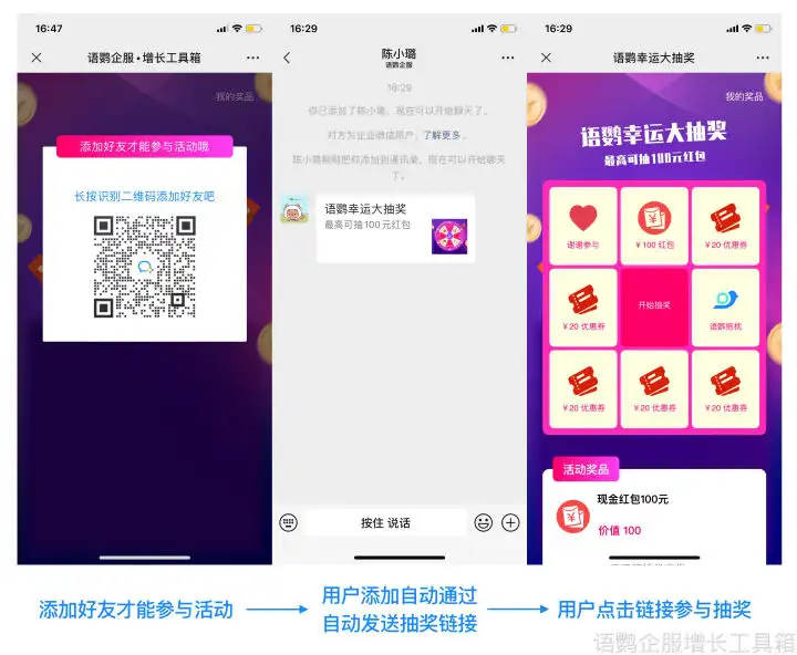 该附件里面能够包含实际的抽奖链接,保证仅有社群的成员可以参与。而对于那些已经是好友的客户,就会直接跳转至活动的页面。