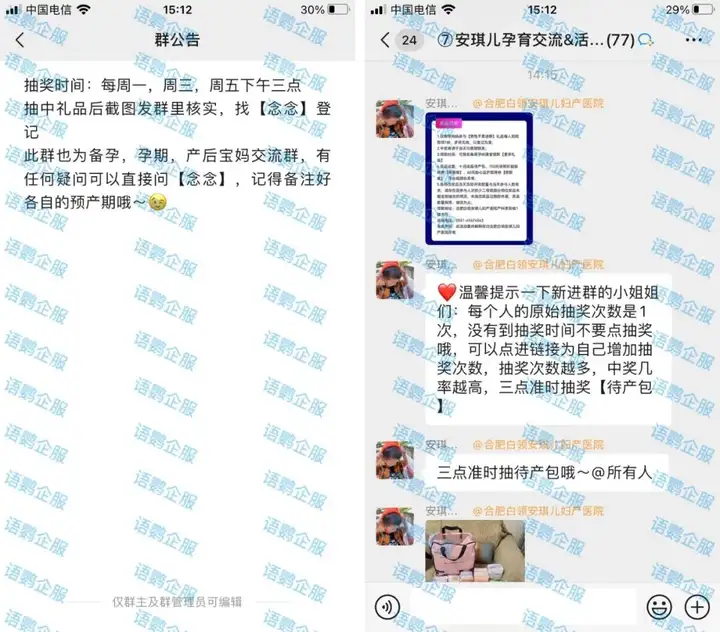 以上就是关于《如何通过抽奖活动助力社群活起来?安琪儿妇产医院的抽奖助力活动是怎么玩的?》的全部内容了,抽奖活动是激活社群的有效手段,安琪儿妇产医院的成功经验值得我们学习和借鉴,需要注意的是,以上内容是根据一般情况进行的描述,具体的抽奖助力活动需根据医院的实际情况和需求进行调整和变化。更多企业微信私域玩法,欢迎关注语鹦企服私域管家。