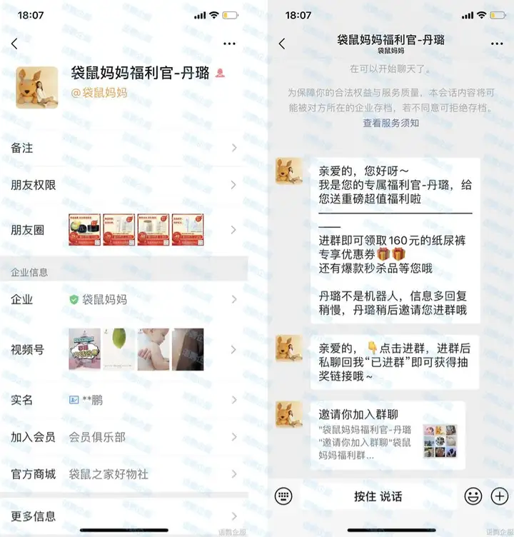 以上就是关于《传统电商搭建私域流量如何引流?婴童电商袋鼠妈妈如何通过包裹卡高效私域引流?》全部内容。总的来说,用好包裹卡引流的方法,可以以最低成本获取精准用户,把他们放在企微社群中运营,搭配相关的运营方式,即可发挥社群有效周期内的最大价值。更多企业微信私域玩法,欢迎关注语鹦企服!