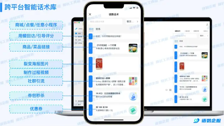 对于销售快速响应重复的问题的需求,语鹦企服有话术库的功能。企业可以预先设置常见问题及其标准回复,确保每次回复都专业、统一。结合会话内容存档,同时借助AI技术可以预测最应该回应客户的内容,自动推荐话术。