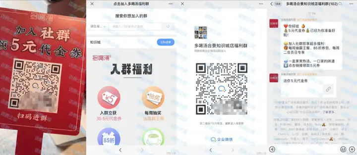 以上就是关于《餐饮店社群营销怎么弄?连锁炖汤品牌多喝汤如何借助定位进群让顾客进入指定门店?》的相关内容了。餐饮企业可以通过社群营销的方式,活跃社群,与消费者建立紧密联系,增加品牌知名度和用户黏性。更多企业微信私域玩法,欢迎关注语鹦企服私域管家。