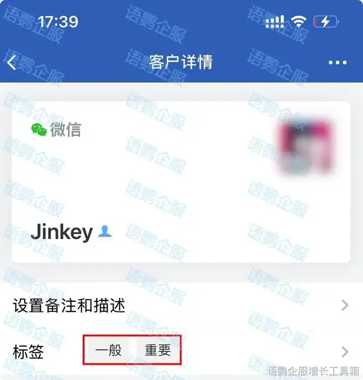 手机端打开企业微信,点击对应的客户头像,在【客户详情】页下方的【标签】处就可以看到自动打标签的效果了。