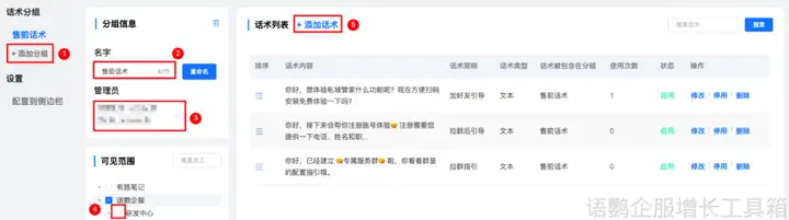 为了确保服务质量一致性,需要制定标准化的话术,并对员工进行培训。例如,可以针对常见的客户问题,制定标准化的回复话术。语鹦企服的“跨平台话术库”功能可以帮助企业高效地管理和共享话术,实现一次配置,全员同步,减少信息下传成本。