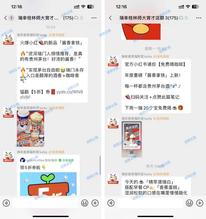 在社群中定期发放优惠券、新品尝鲜券等福利,刺激用户消费。瑞幸根据不同的时间段,向用户推送不同的内容,满足用户在不同时间段的消费需求: