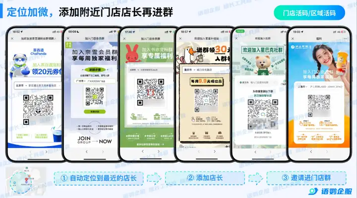 瑞幸利用LBS(基于位置的服务)分层模式建立私域流量池,形成“线上多次触达、线下近距离配送或自提”的运营模式。这不仅提升了店员拉客及运营社群的积极性,还便于收集区域性用户行为数据,实现地区精细化运营。语鹦企服就有基于LBS定位加微进群的功能,可以实现这一运营策略。