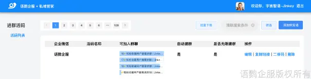 语鹦企服【进群活码】功能生成的群活码永久不会过期,且能自动无限个数创建新群,避免了频繁更换物料的麻烦,且能突破进群人数的限制,避免把顾客”拒之门外”,无疑非常方便了。除此之外,企业还可以进入语鹦企服群活码列表,查看当前群活码的使用情况、关联了哪些群聊,每个群聊的加人情况。数据统计清晰明了,可以直接判断引流活动效果。
