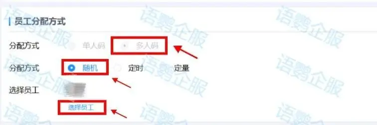 企业配置【员工活码】功能后选择单人码或多人码中的随机分配,再选择一个指定员工,即可实现用户多次扫码都由指定员工跟进,避免用户被重复添加的可能。当客流量较大时,企业也可在随机分配中添加多名员工承接用户,避免流量错失。