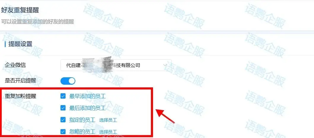 当企业微信中重复客户太多时,依靠员工一个个筛选会非常费时费力,所以企业可配置语鹦企服的【好友重复提醒】功能,避免企业人力资源的浪费。