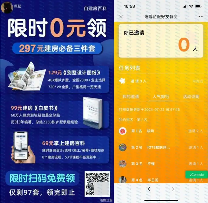 老客户是装修企业最好的口碑传播者。企业可以通过企业微信发起老客户推荐活动,例如推荐新客户享折扣、送礼品等,激励老客户主动分享。利用语鹦企服好友裂变或社群裂变功能,可以快速生成精美海报,方便客户分享至朋友圈或社群,实现裂变式传播,客户邀请情况自动统计,奖品自动化领取。