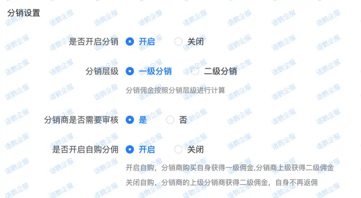 企业需要制定合理的分销政策,包括分销等级、佣金比例、提现规则等,以激励分销员积极推广。分销员的佣金规则可设置为一级或二级,企业根据不同的商品和销售情况进行设置,最高佣金不得超过商品实际价格的50%。此外,开启自购返佣时,分销商购买商品后可以获得相应佣金,关闭后则不享有此权益。