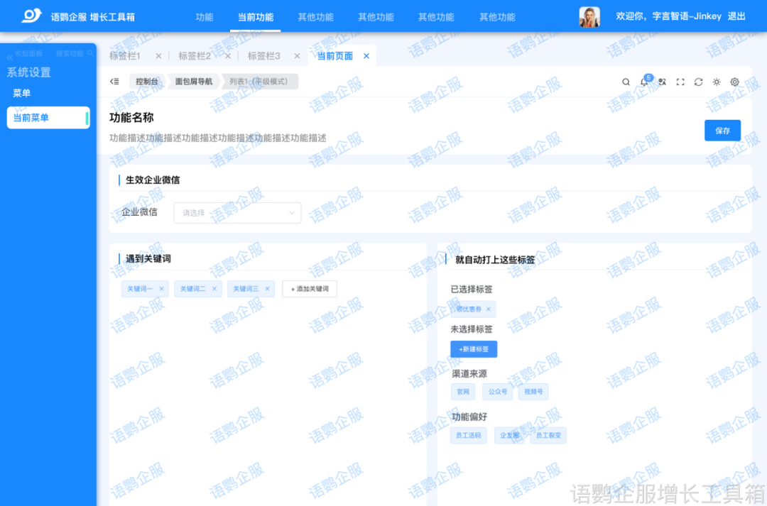 企业可以通过语鹦企服的【留资表单】功能,创建各种类型的表单,收集客户对产品或服务的反馈意见。例如,企业可以设计一个“售后服务满意度调查”的表单,收集客户对售后服务体验的评价,并根据收集到的数据进行分析,针对性地优化服务流程,提升客户满意度。此外,留资表单还能帮助企业自动为客户打上标签,例如“满意客户”、“不满意客户”等,方便企业进行后续的客户管理和服务跟进。