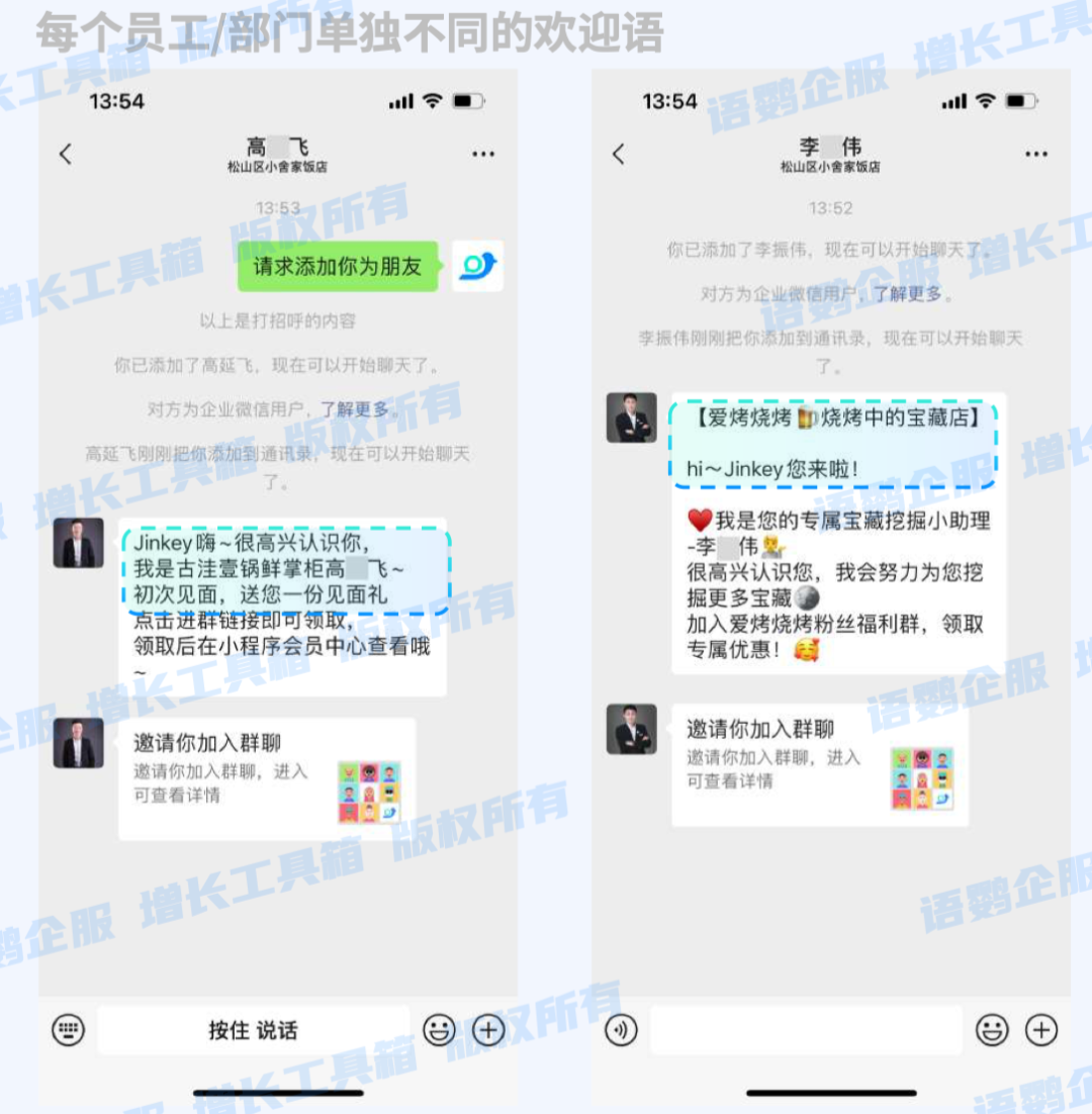 这需要用到语鹦企服的个性化欢迎语功能。个性化欢迎语 是语鹦企服提供的一个单独功能,用于在用户在非活码渠道添加员工为好友后,自动发送个性化欢迎语。不仅如此,企业还可以给不同员工,不同部门设置单独的加好友欢迎语,实现个性化互动。