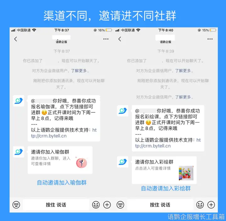 除此之外,【员工活码】功能还支持不同渠道员工活码设置不同欢迎语及入群邀请。当不同渠道的客户扫描同一员工的员工活码时,系统会自动区分并向其推送不同渠道的欢迎语及社群邀请,帮助企业实现不同渠道的差异化运营。