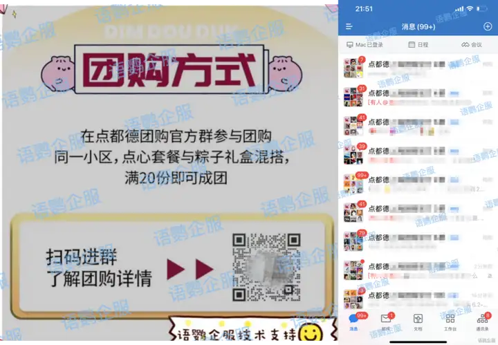 某老字号茶楼点都德通过语鹦企服的“无限群活码”+花式拼团打法,积极打造活跃的社群,将用户聚合在一起,实现了快速涨粉。正是有了无限群活码,点都德得全自动创建新群,并将超过上限的客户自动加入新群,确保客户能够持续参与到企业的社群拼团活动中。