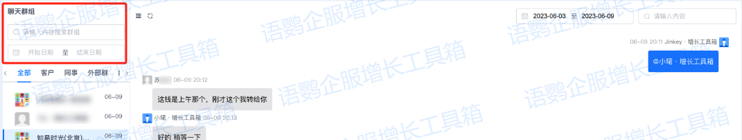 企业还可以开通语鹦企服的【会话存档】功能,可以记录员工与客户的所有沟通内容,包括文字、图片、语音、文件等。这样不管员工是在职还是离职,企业都可监管员工的企业微信使用情况,依然可以了解客户情况,进行跟进维护,防止客户流失,避免员工私加微信。