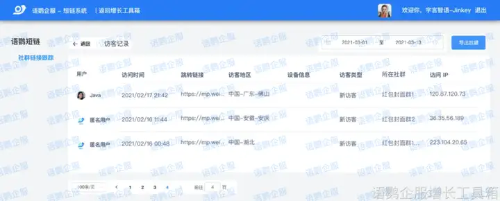 语鹦企服提供的不仅仅是工具,更是一套完整的数据化客户关系管理解决方案。通过整合企业微信的客户数据和语鹦企服的分析工具,企业可以更全面地了解客户行为、偏好和需求,为市场营销、产品研发、客户服务等提供数据支持。例如,可以通过「社群链接跟踪」分析客户的购买行为,了解哪些产品更受欢迎,哪些客户群体更有价值;可以分析客户的互动数据,了解客户对哪些内容更感兴趣,哪些活动参与度更高。