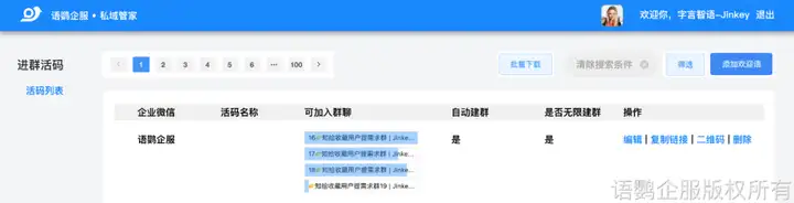 以上就是关于《企业微信群二维码可以扫多少个人?企业微信群活码可以添加多少客户?》的相关内容了。企业微信自带的群二维码和群活码功能,在一定程度上可以满足企业的社群运营需求,但人数限制仍然是一个瓶颈。想要突破限制,实现更灵活、更高效的社群运营,语鹦企服的「无限群活码」功能是一个不错的选择。它可以帮助企业轻松构建和管理大规模社群,实现持续引流和精准的用户运营。更多企业微信私域玩法,欢迎关注语鹦企服私域管家。