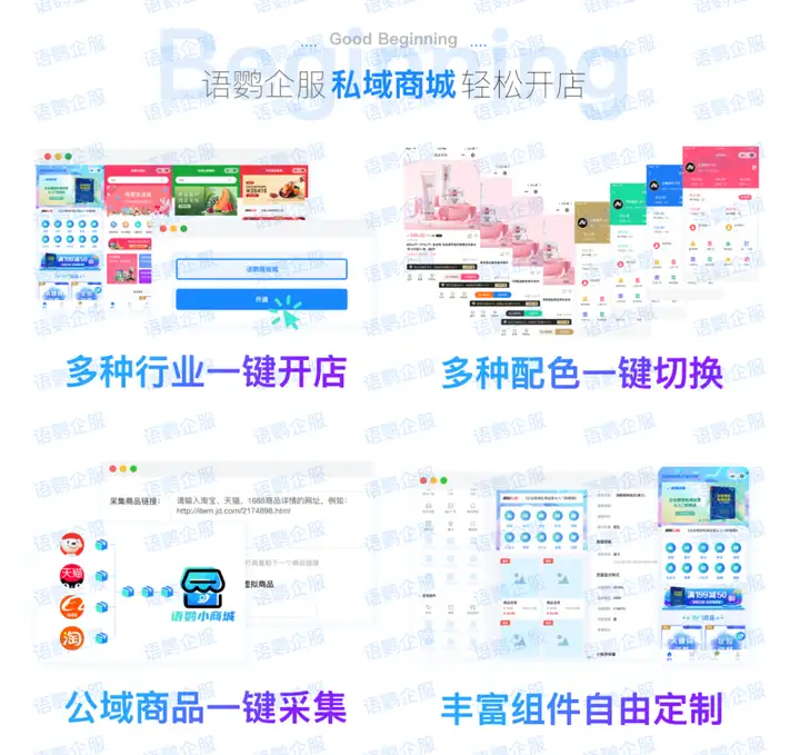 以上就是关于《怎么搭建社交电商平台?如何建立个性化的社交电商新生态?》的相关内容了。搭建社交电商平台的关键在于选择合适的平台和工具,并搭建完善的电商基础设施。语鹦企服提供的「语鹦微商城」系统,支持一件开店,大大降低了电商搭建成本,且通过「智能用户画像」、「大转盘抽奖」、「社群裂变」等功能,可以帮助企业更好地搭建和运营社交电商平台,在激烈的市场竞争中取得成功。更多企业微信私域玩法,欢迎关注语鹦企服私域管家。