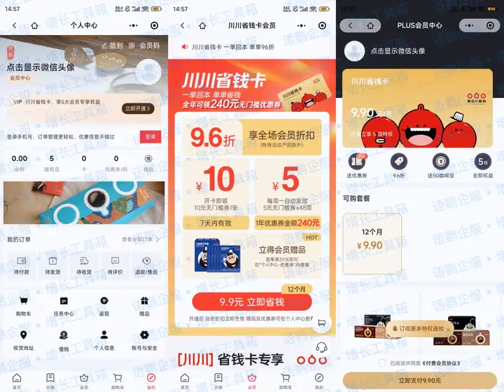 咖啡小白:入门级会员,新用户注册即可获得,享受基础的新人优惠券礼包,包括一张无门槛2元优惠券和一张满19.9元可用的5元优惠券。