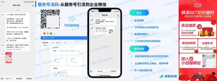 在引流获客阶段,通过关注服务号自动发员工活码,让用户都能便捷地添加企业微信。服务号活码的价值在于能够为不同渠道的用户提供差异化的引导体验。当用户通过不同渠道关注隅田川咖啡的服务号时,系统会根据活码参数自动识别用户来源,并推送相应的欢迎语和福利内容。