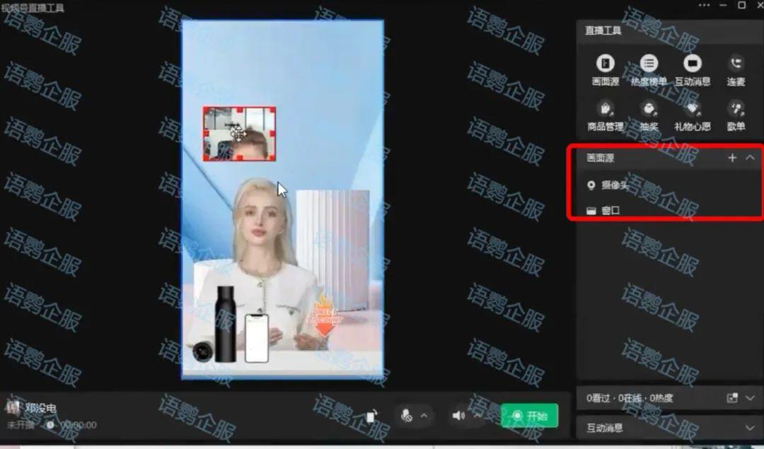 在语鹦企服中,商家可以在搭建数字人直播画面的同时,配图产品实物照,进行更为生动的产品说明;同时真人也可以通过画面源增加的方式,与数字人进行同步出镜,将需要互动的文案和节点植入到数字人当中,真人便可有计划地与数字人进行一唱一和式销售,达到良好的吸睛效果。