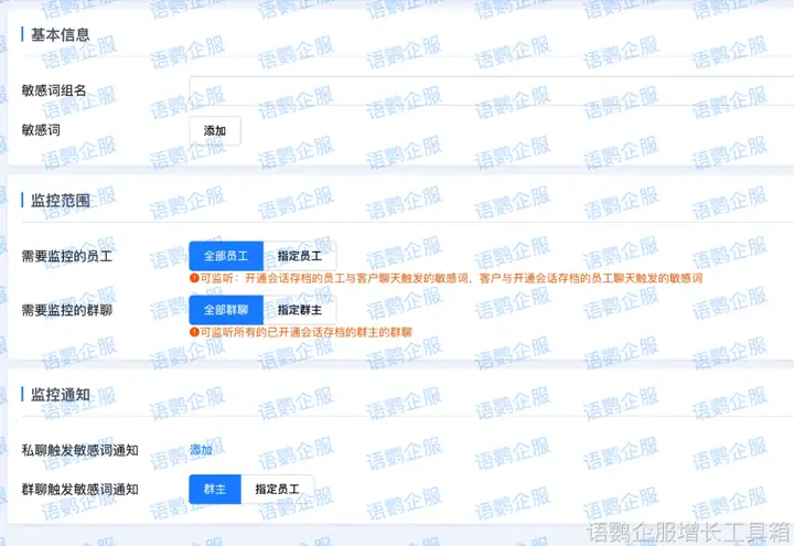 敏感词监控则建立了重要的风险防控屏障。员工可能无意中提及夸大治疗效果、承诺不当优惠、泄露患者隐私等内容,给诊所带来合规风险。语鹦企服的敏感词监控功能实时监测员工与患者的沟通内容,一旦发现敏感词汇立即通知管理员,让管理者及时介入处理。管理者可以设置如”保证根治”、“立即见效”、”绝对安全”等容易引发纠纷的敏感词汇,确保员工沟通符合医疗广告规范。
