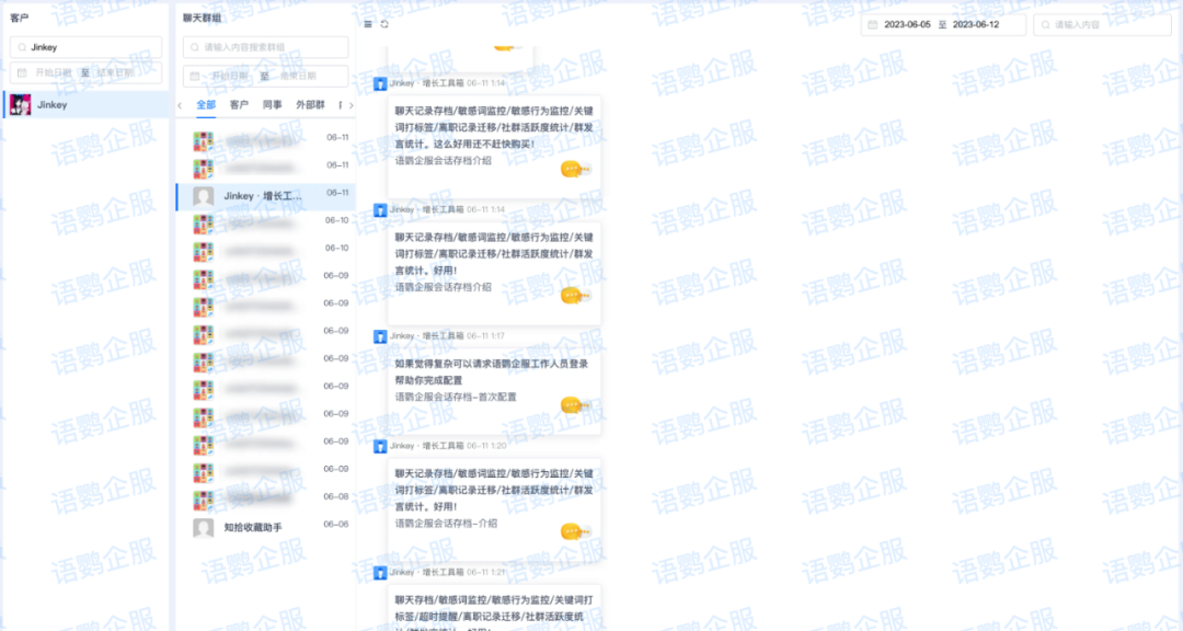 但仅靠离职继承还不够。语鹦企服的会话存档功能能永久保存所有聊天记录,新接手员工可以快速了解客户的沟通历史、需求偏好、购买记录等关键信息,避免了”从零开始”的尴尬。一家拥有200名销售的教育机构通过部署会话存档系统,将员工离职后的客户保留率从不足40%提升到85%以上。