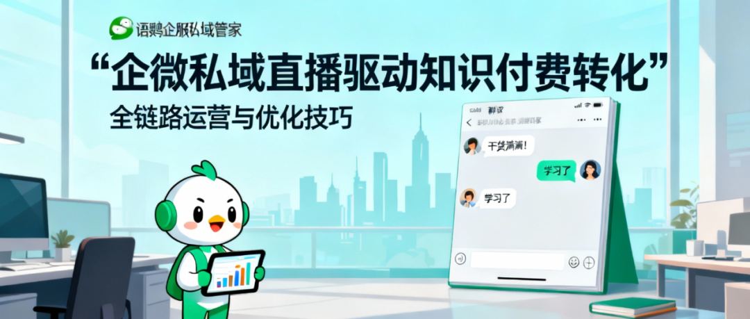 以上就是关于《企微私域直播如何驱动知识付费转化?全链路运营与优化有哪些技巧?》的相关内容了。私域直播重构了知识付费的转化链路,让机构从流量竞争转向用户运营,从单次交易走向长期价值挖掘。更多企业微信私域玩法,欢迎关注语鹦企服私域管家。