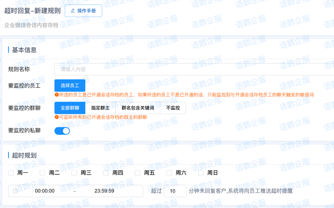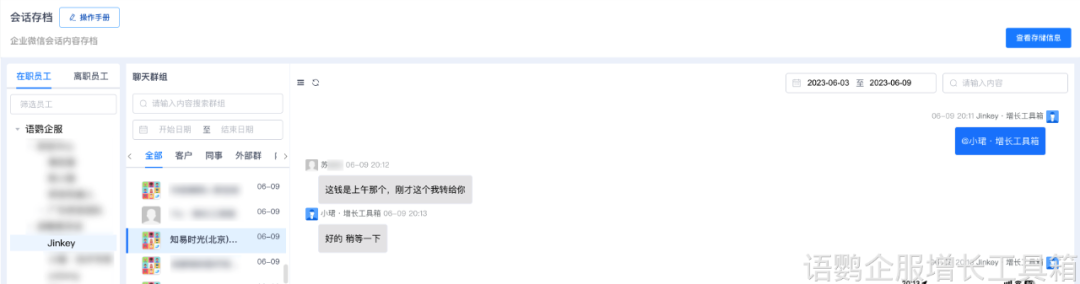 售后场景中,会话存档还能防范纠纷风险。某些客户可能在收货后声称”客服承诺过包邮”,但实际沟通中从未提及。语鹦企服的会话存档支持按成员、时间、关键词等多维度搜索,哪怕是几个月前的对话也能快速定位,拿出证据说明情况,避免不必要的经济损失。