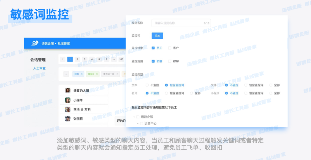 一个行业内未被充分重视的场景是:敏感词预警同样可识别”飞单”风险。当员工对话中出现”加我私人微信””转账到这个账户”等表述,往往意味着存在将客户导向私域牟利的嫌疑,机构可在问题萌芽阶段及时介入。
