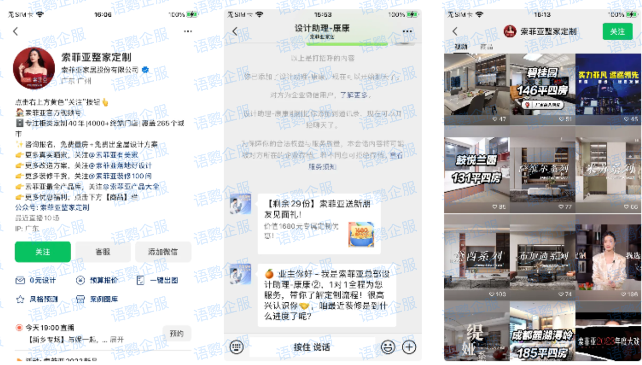 以上就是关于《低频高客单产品如何玩转私域?定制家装品牌索菲亚私域是如何引流2000W用户的?》的相关内容了。低频高客单行业做私域的核心在于建立专业信任、延长用户生命价值、打通线上线下闭环。更多企业微信私域玩法,欢迎关注语鹦企服私域管家。