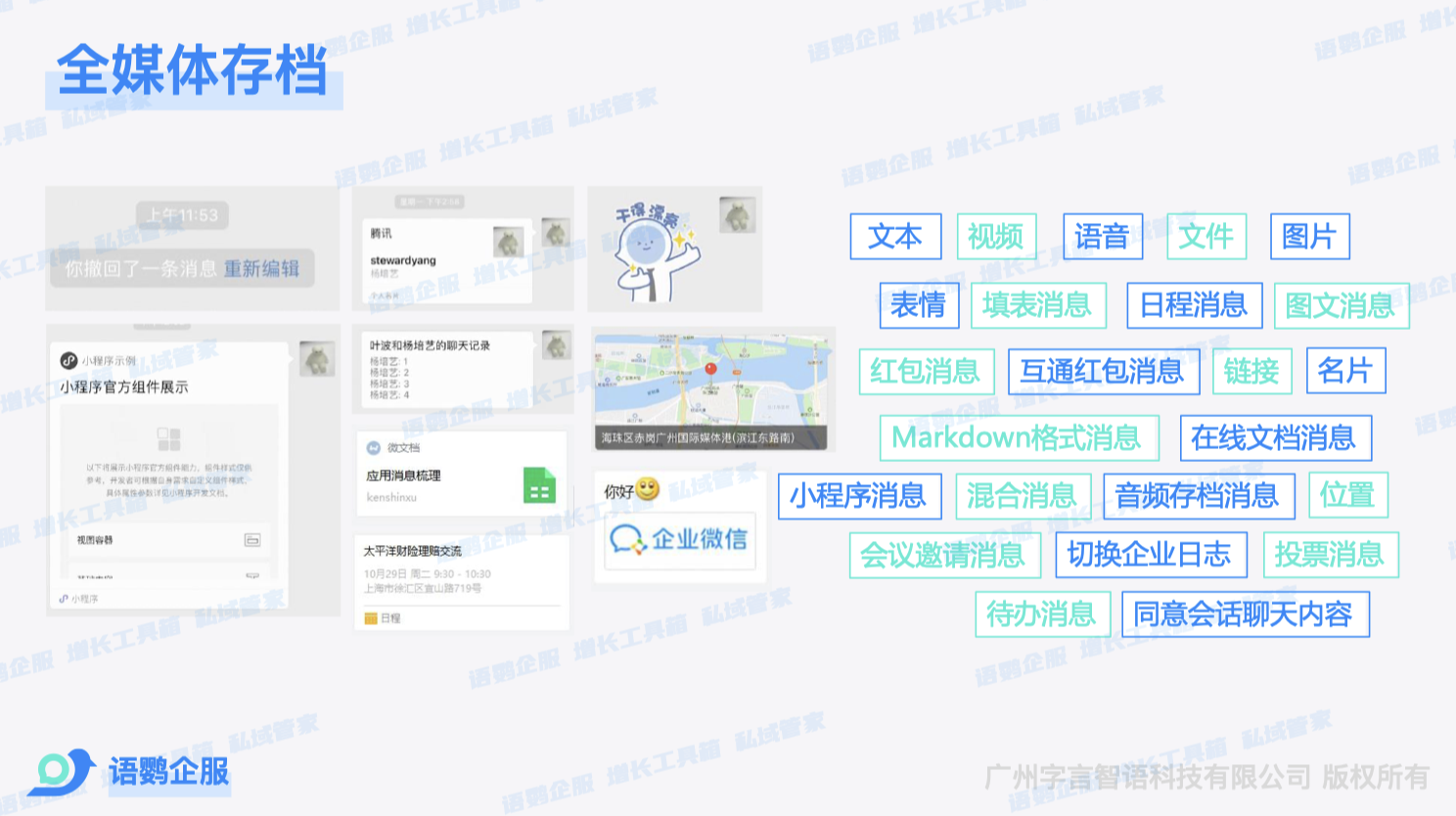 以上就是关于《企微会话存档如何杜绝风险?怎样提升员工行为监督透明度?》的相关内容了。会话存档不仅是风险防控的利器,更是提升管理透明度、优化服务质量的重要工具。更多企业微信私域玩法,欢迎关注语鹦企服私域管家。